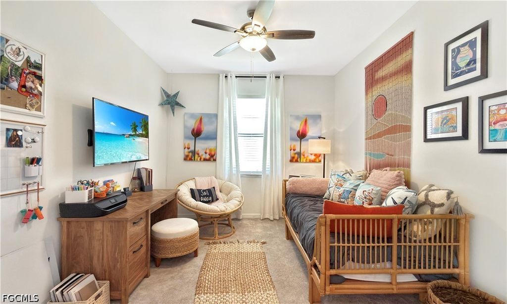 A split floor plan ensures privacy for guests, with a front bedroom featuring oversized double windows and a full bathroom nearby. The second bedroom features an en-suite bathroom with a walk-in shower, while the den provides versatile space for a home office, media lounge, or playroom.