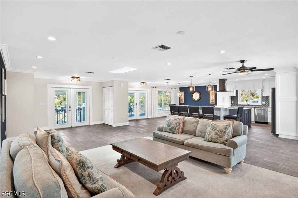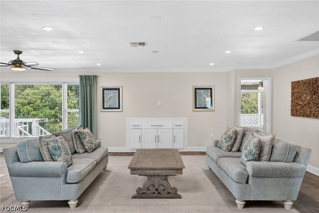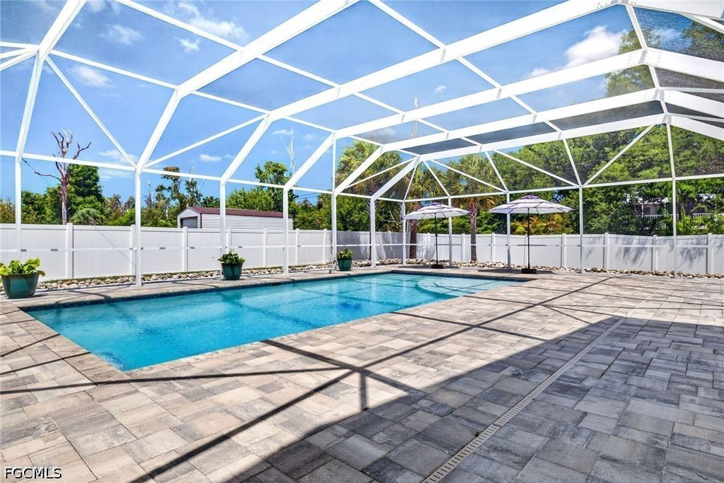 Private half-acre island estate near Pine Island Center with guest cottage, resort-style pool, and 3-bay garage "” elevated & flood-ready. Tucked away on a quiet dead-end street with no through traffic, this private property offers a rare combination of space, flexibility, and income potential "” all within walking distance to Pine Island Center, including parks, the library, museum, tennis and pickleball courts, and the public pool. Enjoy the laid-back charm of island living while maintaining a private, spacious setting, with a short drive to nearby marinas for easy boating access. Elevated above the floodplain for peace of mind, the main home features an open, light-filled layout with plank tile flooring, crown molding, and two large skylights. The kitchen is designed for both everyday living and entertaining, showcasing two oversized islands, quartzite countertops, abundant cabinetry, soft-close doors and drawers, a range hood, and an oversized Frigidaire Gallery refrigerator/freezer. The eat-in kitchen flows seamlessly to a large screened front porch through double French doors, creating ideal indoor-outdoor living. The home offers two primary suites, including a large primary bedroom with a bay window overlooking the backyard, a walk-in closet, and a well-appointed bath with glass shower and barn door entry. A guest bedroom with its own full bath adds privacy, while additional space allows for a potential third bedroom if desired. Step outside to a true backyard retreat featuring a 16x32 heated saltwater pool with a 1,800 sq ft screened paver enclosure, elevated rear deck, and mature tropical landscaping, with a rare 7-foot depth ideal for both relaxation and recreation. The fully fenced property includes a double gate for easy access and storage of boats, trailers, or equipment. A standout feature is the detached guest cottage with its own entrance, parking, and meter "” complete with full kitchen, living area, bedroom, and bath "” ideal for extended family or rental income. Built with long-term ownership in mind, this property includes a metal roof (2017), three A/C systems (approx. 3 years old), whole-home generator with 500-gallon buried propane tank, updated electrical system, flood venting, elevated mechanicals for FEMA compliance, whole-home surge protection, water filtration system, hurricane shutters, and a septic system replaced in 2023. The oversized 3-bay garage with A/C workshop provides incredible space for hobbies, storage, or business use. A rare opportunity to own a versatile, move-in-ready property that offers privacy, functionality, and income potential in one exceptional package.