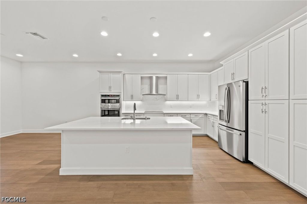MOVE IN READY, never lived in new construction highly upgraded home with pine tree preserve view. High quality built home by GL Homes in Valencia Harbor 55+ Community. Very desirable Bahama 3,116 sf floor plan with $225k in stunning upgrades throughout the home. Plenty of room for larger family or visiting guests with 4 bedrooms plus den and 4 full baths. Two extra bedrooms have ensuite baths. Open floor plan with gourmet upgraded kitchen which includes top of the line appliances, upgraded cabinets and quartz countertops. The single story floor plan offers convenient flexible living. Plenty of room to add your own custom pool. Valencia Harbor's amenities are currently under construction which will include a community center and exquisite clubhouse with a restaurant with indoor and outdoor seating and pool side bar, resort style pool, lap pool, heated spa, pickle ball and tennis courts, fully equipped 24 hour fitness center, Bocce Ball, men's and women's locker rooms, and aerobics/excercise studio.