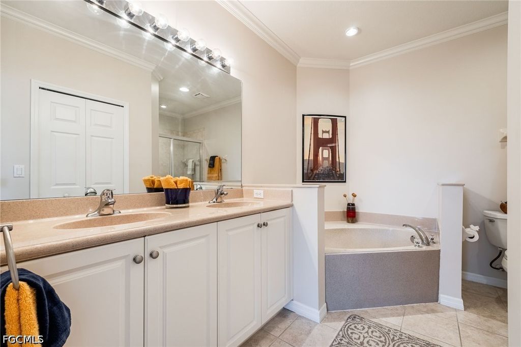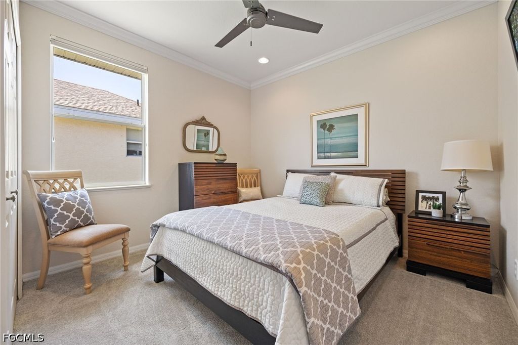 MOVE-IN-READY VILLA, meticulously maintained 2 Bedrooms, 2 Baths plus Den, is located in the Gated Community, Province Park. This Home is PRICED TO SELL! Tastefully Furnished, being sold TurnKey. All the new owners will need is their personal items. Province Park is a very active community, desirable location convenient to shopping, restaurants, and I-75. Loaded with amenities which are, Bocce Court, Clubhouse, Community Park, Community Pool, Community Room, Community Spa/Hot tub, Dog Park, Exercise Room, Pickleball, and Tennis Court. All of this with affordable LOW DUES. The Villa itself has plenty of upgrades. Recessed lighting, Crown Molding, Tile back splash in kitchen, along with stainless steel appliances, front loader stainless steel washer and dryer, solid surface counter tops and white wood cabinets. The Primary bedroom has it's own private door out to an oversized screened in lanai. En-Suite bathroom with a jetted corner tub, tile shower, dual sinks, and walk-in closet. New Roof in 2023. Den/Office comes with a sofa bed giving extra room for guest. To round this all off there is a Large epoxy floored, 2 car garage, with plenty of room for storage. A fun filled Community, plenty of activities, low dues, a beautiful Villa, all waiting for you in Sunny Florida. So make your appoiintment today!