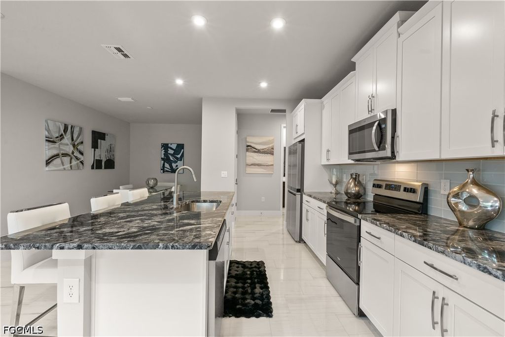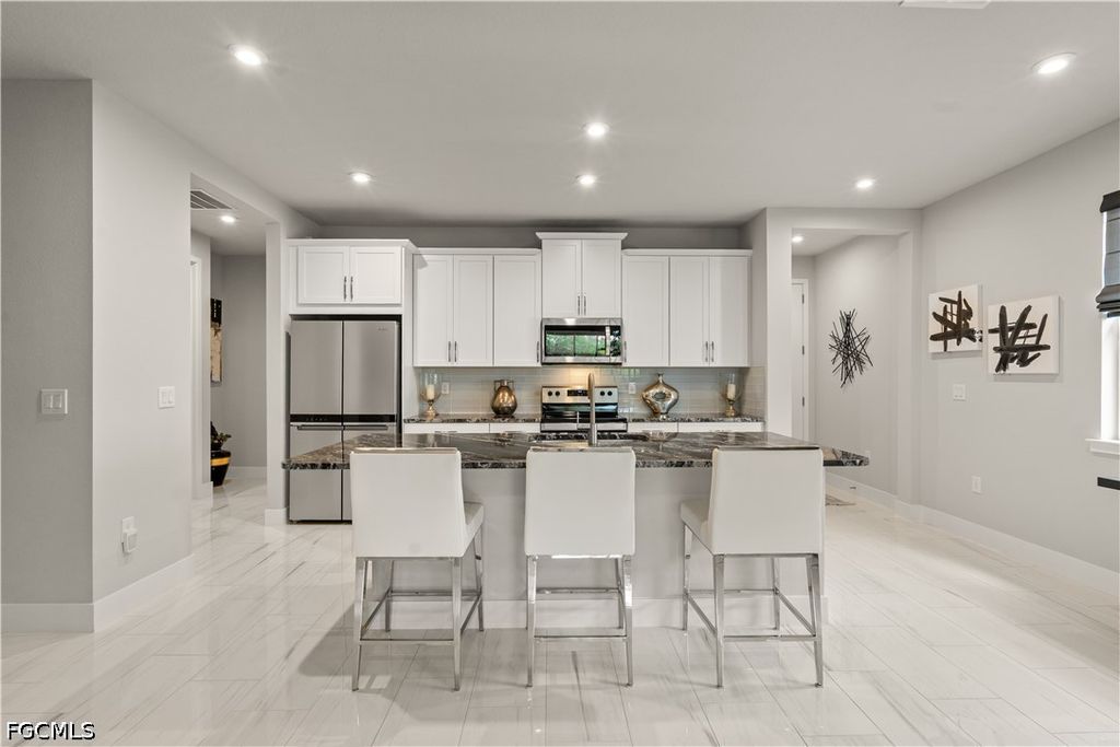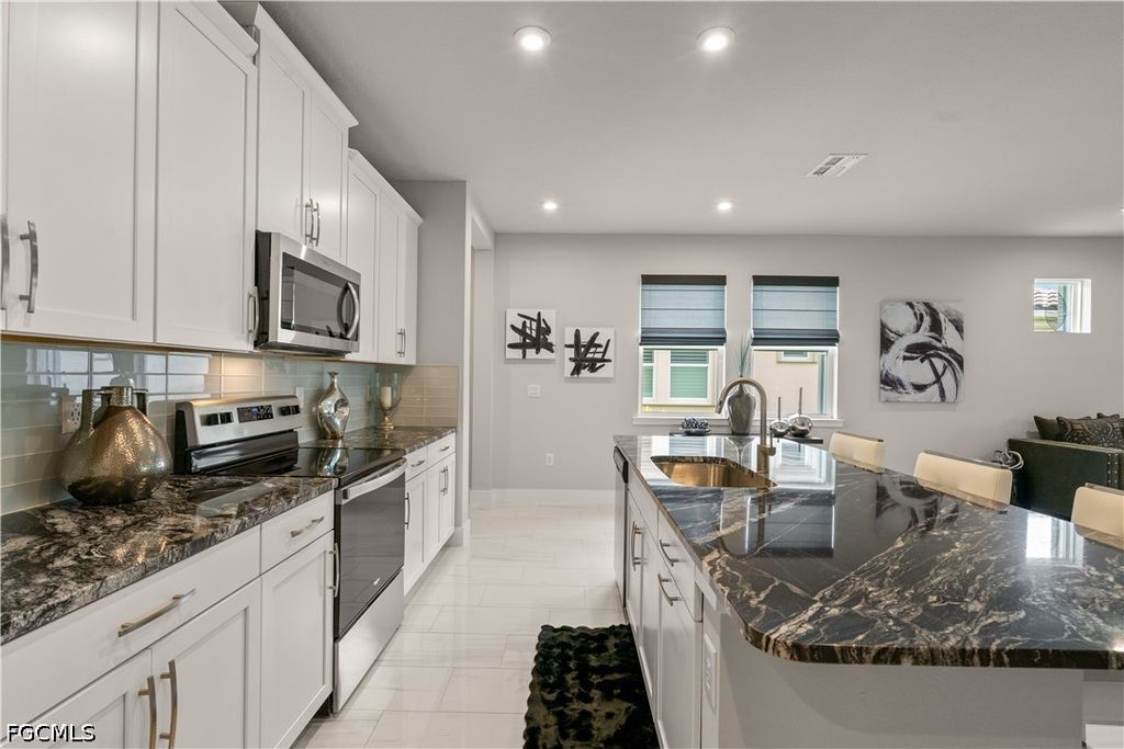 Welcome to Bonavie Cove. This stunning Oceana model, built in 2022, offers 2 bedrooms, 2 bathrooms, and a bright, open-concept floor plan designed for comfortable everyday living and effortless entertaining. Extensively upgraded, this home is better than new and offers a modern feeling throughout. Upgrades include high impact rated accordion storm shutters, electric roll down Kevlar hurricane shutters on the lanai, 8' tall doors throughout, stunning flooring, high end countertops, well-appointed bathrooms, premium appliances, and so much more. Step outside to your screened in lanai, where you'll notice a larger area between the neighboring home, you'll enjoy a private, peaceful setting ideal for relaxing or hosting guests. Bonavie Cove offers resort-style amenities including a sparkling community pool, fire pit, fitness center, dog park, and thoughtfully designed outdoor gathering spaces. Ideally located with quick access to I-75, RSW International Airport, Downtown Fort Myers, Southwest Florida's world-famous beaches, and an abundance of shopping and dining options, this home delivers both lifestyle and convenience. Opportunities like this don't last "” schedule your showing today.