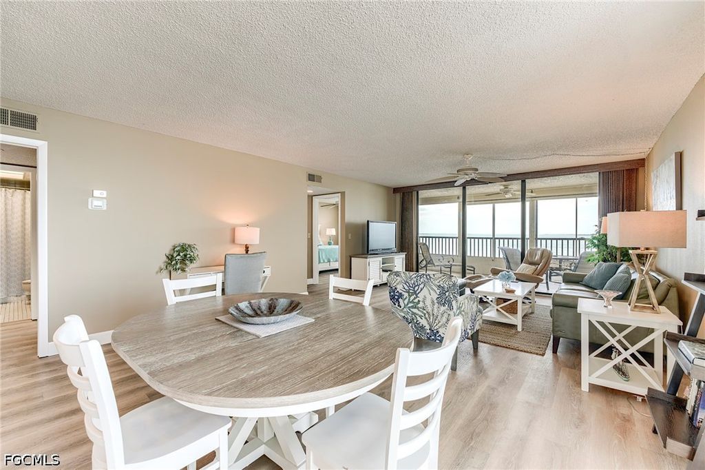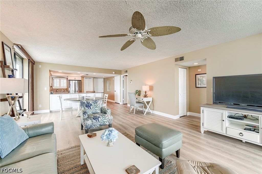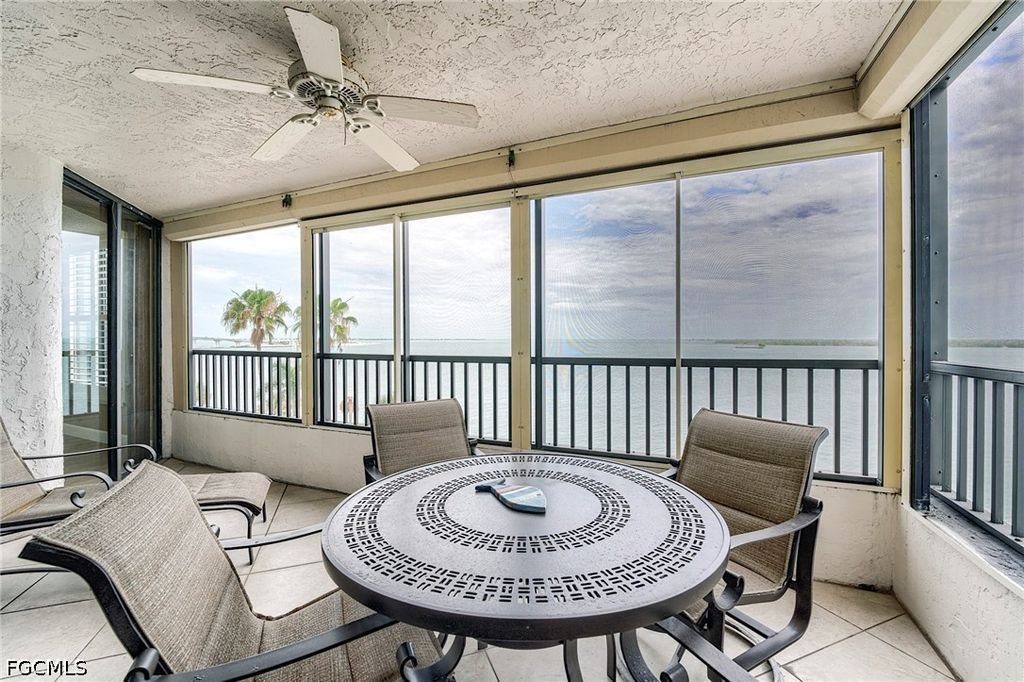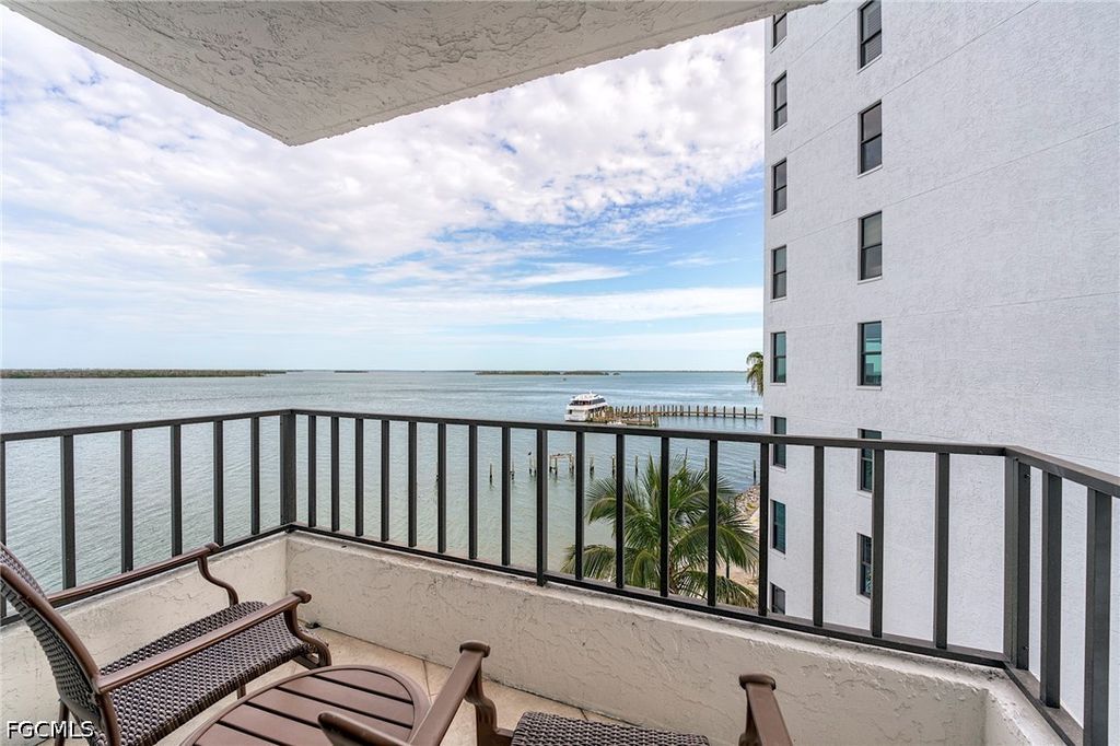 Finally, an END UNIT with the balcony off the dining area. From the moment you enter this beautifully appointed home, it will grab your heart with a sweeping dramatic unobstructed view of San Carlos bay Coastal design that captures a relaxed atmosphere of a permanent vacation. Imagine waking up to this bountiful view of beauty. New master bath with exquisite tile wall, luxurious vinyl floors, kitchen features granite counters, shaker cabinets, with extra storage under cabinets, storm shutters. plantation shutters and custom window treatments. location is a Boaters delight with Sanibel Harbour Yacht Club next door as well as the Sanibel Harbour Marriott resort and spa.