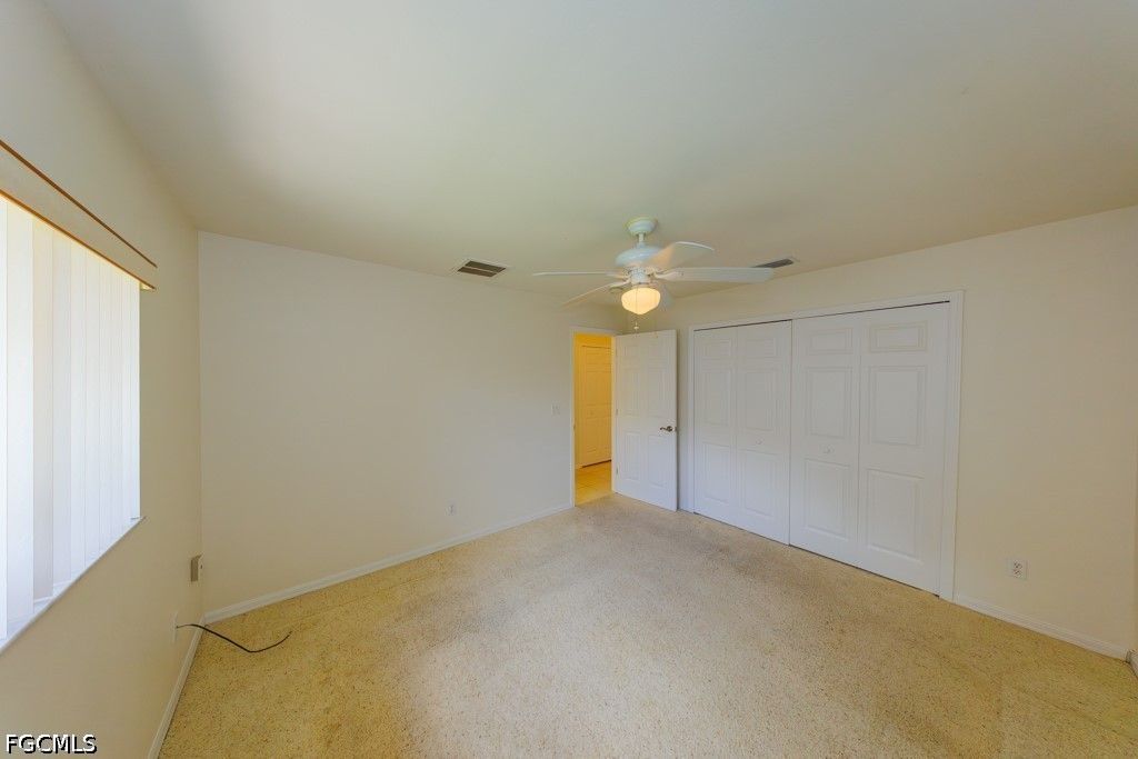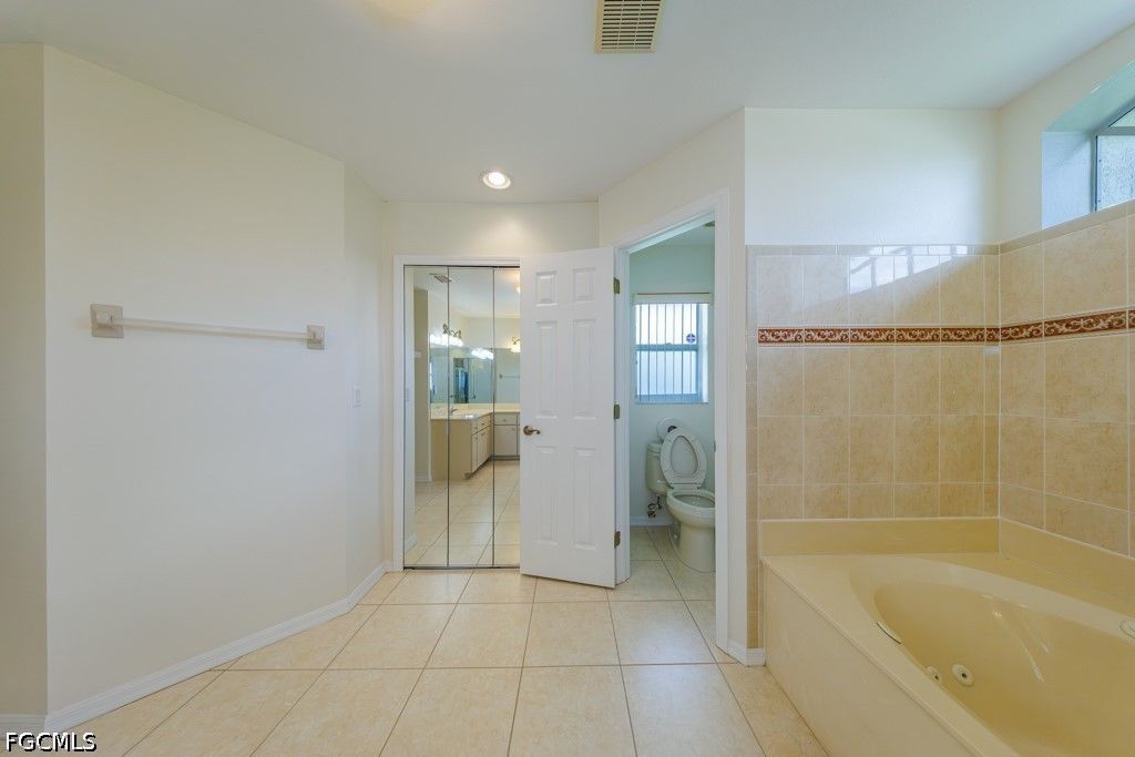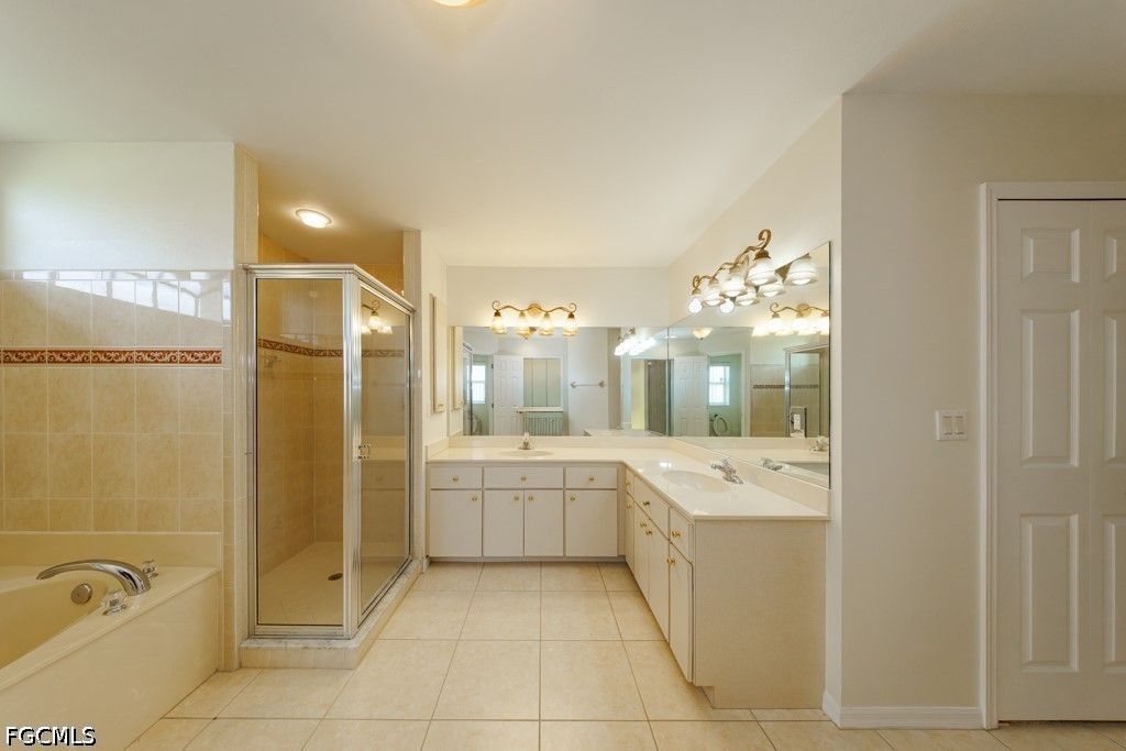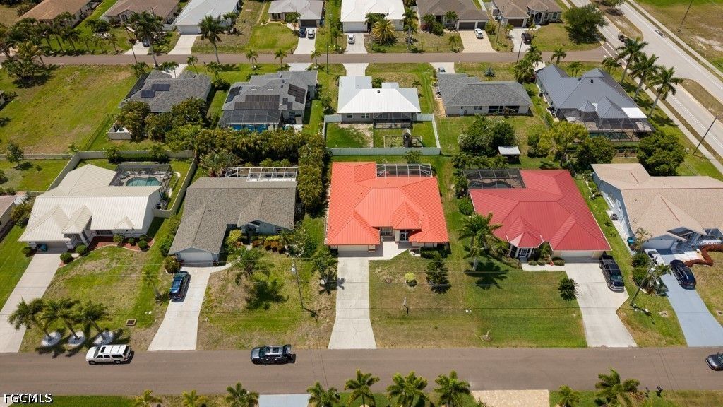 Welcome to this beautifully maintained one-owner home offering an impressive 2,361 sq ft of living area and 2,852 total sq ft, located in a quiet and highly desirable neighborhood in SW Cape Coral. This spacious residence features 3 bedrooms, 2.5 bathrooms, including a well-appointed primary suite with dual sinks, jetted tub, and separate tub and shower. Generous closet space throughout, including two walk-in closets in the primary suite and a walk-in cost in on of the guess bedrooms. The home offers a functional and inviting layout with a formal living and dining area, plus a large family room perfect for entertaining or relaxing. Architectural details such as arched double-hung windows bring in abundant natural light, while the French door entrance with an oversized screened entry adds both elegance and comfort. The home also features sliding doors in all main living areas, including the primary bedroom, creating seamless indoor-outdoor living. The kitchen is equipped with Corian countertops, stainless steel appliances, and beautiful cabinets, offering both style and functionality. Step outside to an oversized screened lanai, offering plenty of room to add a pool and create your own outdoor oasis. Additional features include a durable metal roof and the peace of mind of assessments paid. Ideally located in a tranquil SW Cape Coral neighborhood, surrounded by Gulf-access homes just across the street, and close to highly rated schools, dining, and conveniences. A rare opportunity to own a lovingly cared-for home in one of Cape Coral's most sought-after areas.