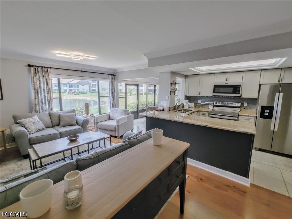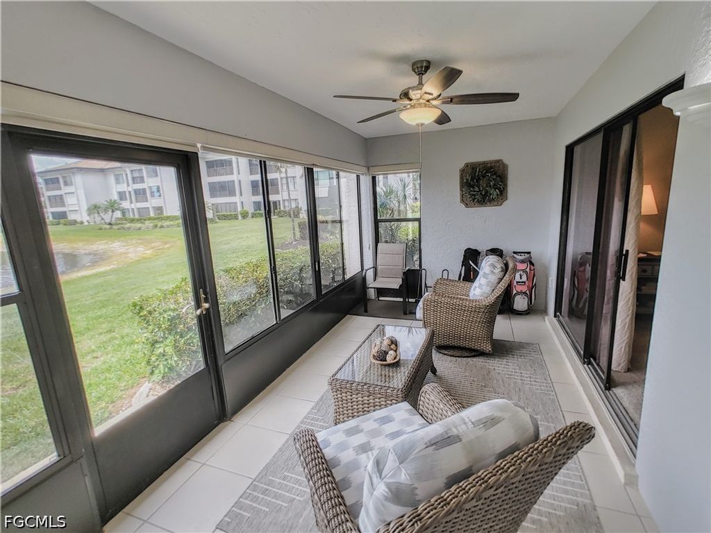 Don't miss that awesome, very rare, opportunity for a FIRST FLOOR condo. Introducing a delightful residence with upgraded luxury wooden flooring in living area and guest bedrooms, light and bright, nestled in a serene and private neighborhood in the 'City of Palms', very close to restaurants, shops, shopping malls and the SW International airport. The amazing updated kitchen comes with beautiful granite counter tops, a tasteful titled backsplash and high-end stainless steel appliances. This immaculate well kept gem, is seated in one of the best locations in a hidden Golf community in the heart of Fort Myers, a very active community with many residents in their early retirement age. Enjoy the Florida sunshine with your morning coffee overlooking a lake with Golf course view. The charming three-bedroom, two-bathroom condo is the perfect residence, or second home, for those looking to enjoy the Southwest Florida lifestyle without any outside maintenance. !!Come and see me before it's too late!! This property is NOT in a flood zone!