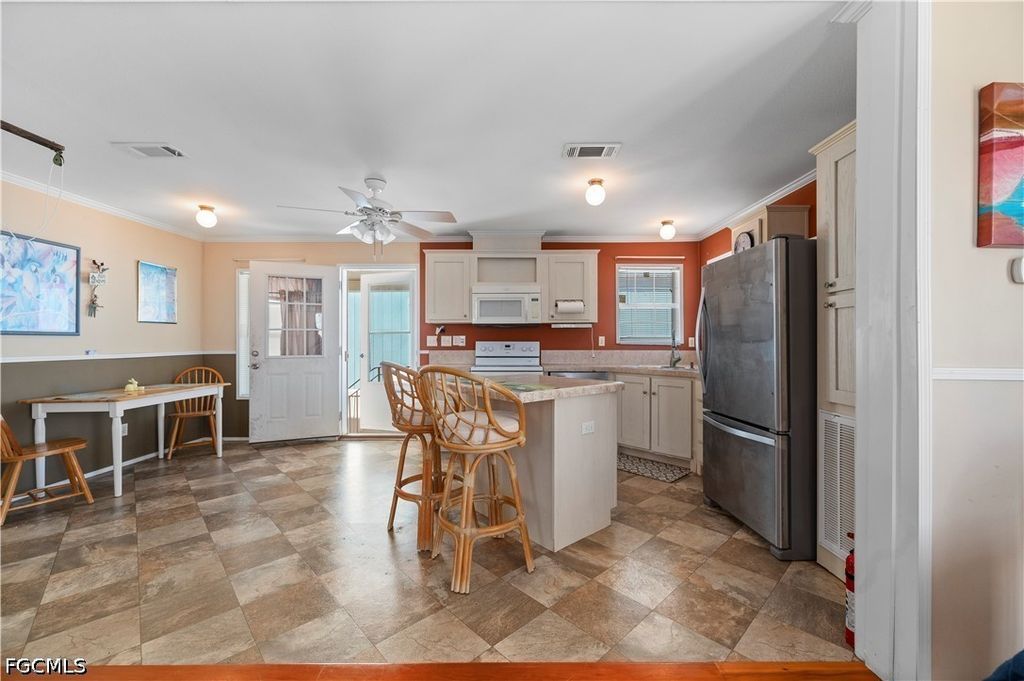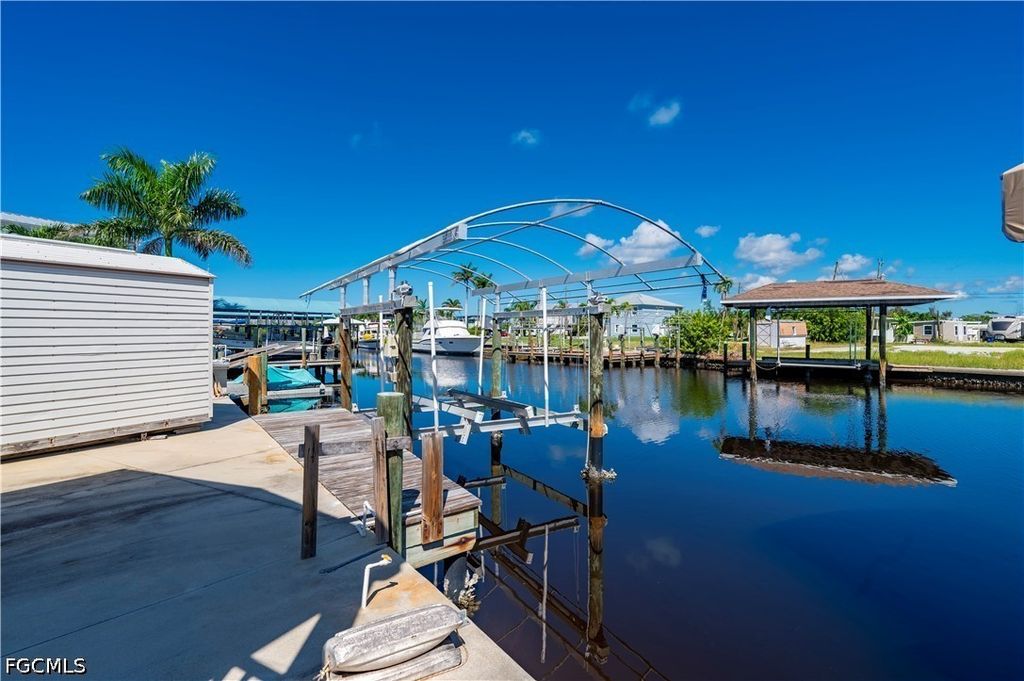 There's a certain magic to life by the water-where mornings start with the call of seabirds and evenings end with painted skies over the canal. This 2 bedroom, 2 bath home in St. James City captures that timeless feeling of "Old Florida," offering a simple, carefree lifestyle that's becoming harder to find. Inside, natural light fills the space, giving the home a warm and cheerful personality. The space feels both quaint and comfortable-perfect for those seeking an affordable escape from northern winters or anyone who wants to slow down and enjoy life's quieter pleasures. Step outside and the charm continues. A private dock with electric & water and 8,000lb boat lift makes it easy to set off onspontaneous fishing trips or explore the backwaters, Intracoastal, and nearby Gulf islands. The shed provides plenty of room for hobbies orextra storage, & the 11x21 carport adds convenient covered parking. Friendly neighborhood and a peaceful cul-de-sac setting add to the sense of community and ease. This is a place where memories are made on the water and every day feels a little lighter. With a little TLC, this classic Florida retreat offers wonderful potential; however, the property may have mold and/or moisture-related conditions. Buyers should verify all conditions through independent inspections.