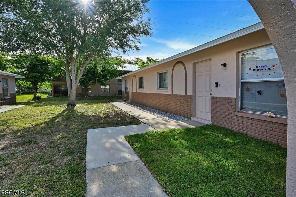 Ideally located just north of Cape Coral Parkway, the property sits in the heart of Cape Coral placing residents within minutes of shopping, dining, and everyday conveniences. The layout is both attractive and practical, featuring two opposing duplexes thoughtfully arranged around a charming central courtyard, highlighted by a mature shade tree that creates a welcoming and tranquil shared outdoor space.
