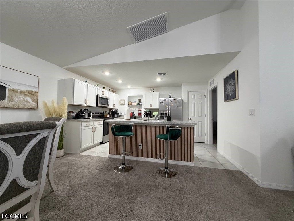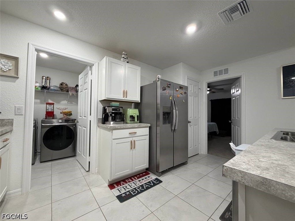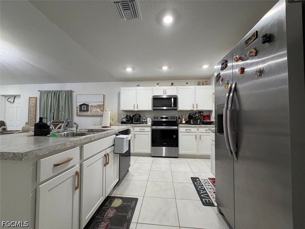 Welcome to this beautifully constructed 2024 single-family home located in a quiet and desirable neighborhood of Cape Coral. This modern residence offers 3 spacious bedrooms and 2 full bathrooms, designed with a functional open-concept layout that seamlessly connects the living, dining, and kitchen areas, creating a bright and inviting atmosphere with abundant natural light.