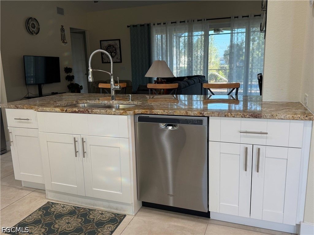 The home has all tile flooring throughout for a clean, modern look and easy maintenance. High ceilings and an open-concept layout create an airy, light-filled atmosphere, perfectly complemented by a large kitchen featuring a stunning backsplash and ample space for cooking and entertaining.