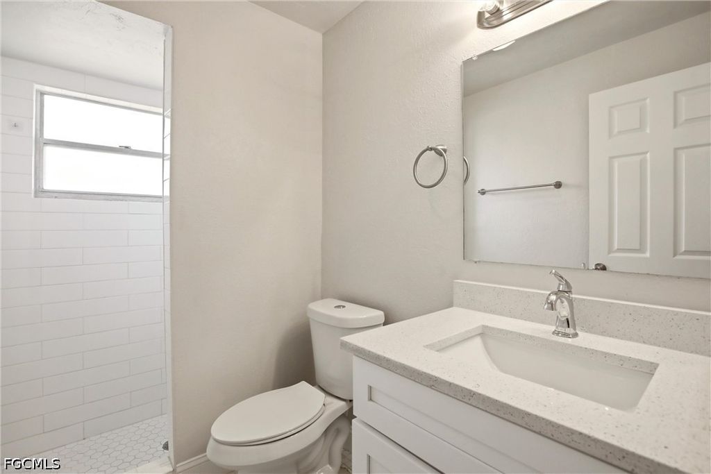 Inside, this concrete block 3-bedroom, 2-bath home offers 1,576 square feet with durable tile flooring throughout and a functional layout suited for both full-time residents and seasonal living. The 2023 remodeled kitchen features white cabinetry, granite countertops, stainless steel appliances, a wall-length pantry, and an island with breakfast bar seating, opening to connected dining spaces through arched entryways. The living room includes vaulted ceilings and sliding doors with canal views, while the formal dining area overlooks the water. The primary suite offers a walk-in closet and updated ensuite bath, and the flexible third bedroom with private patio access can serve as a den or office. With a 1-car garage, laundry hookups, and optional carport, this property delivers a practical, move-in-ready option for those looking to enjoy the waterfront lifestyle in Fort Myers.