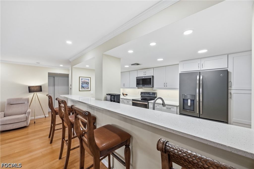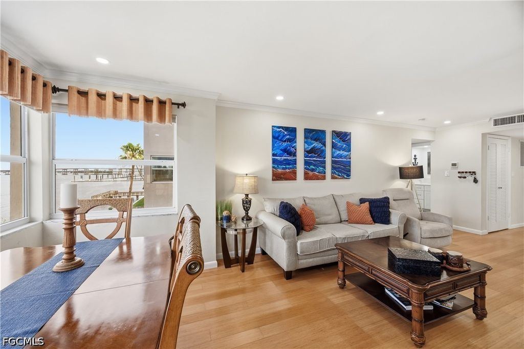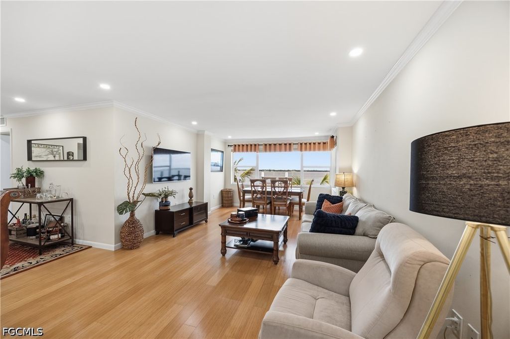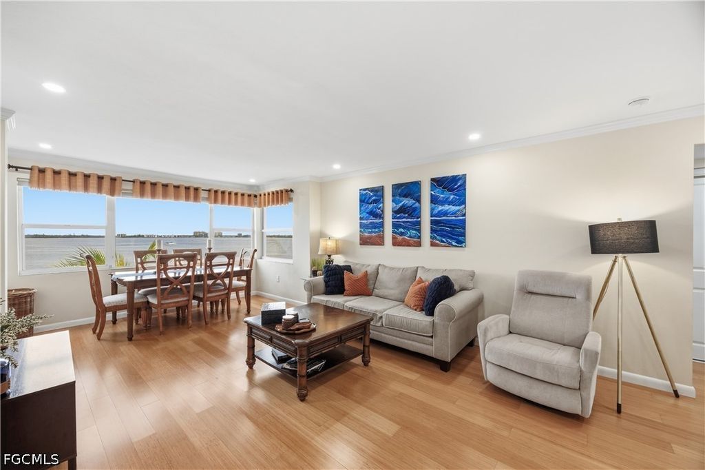 CHECK OUT THE VIEW AT THIS PRIME DOWNTOWN LOCATION! Unobstructed views of the Caloosahatchee River from EVERY room! This fully renovated 3 Bedroom, 2 Bath Condo with a Carport in Riverside Club is located in the highly sought after Fort Myers River District. This property gives you the open concept you desire allowing you to watch those gorgeous SWFL sunsets as boats cruise down the river even from your kitchen! The split floor plan offers two primary suites each with walk-in and wall closets along with a 3rd bedroom that can serve as an office or additional living space. The condo has been elegantly renovated with gorgeous white cabinetry with under-cabinet lighting, quartz countertops, stainless appliances, updated bathrooms, bamboo flooring, crown molding and recessed LED lighting. Entertain friends and family and set up that Charcuterie spread on the massive 15 foot breakfast bar that is open to the spacious family room. Additional upgrades include a Bosch ventless washer and dryer, new dishwasher (2025), AC (2017), water heater (2022), newer ductwork, ceiling fans and lights and polarized, double paned, impact windows! Nothing left to do but move in! Enjoy the beautiful, Florida weather either lounging by the community pool or fishing on the new, private pier providing direct access to the river right from your backyard! Keep your car covered with an assigned carport space and enter the building to the secure lobby taking you directly to two elevators for your convenience. The Riverside Club allows seasonal and annual rentals and owners can have one pet under 25-lbs. Nestled in the vibrant heart of downtown Fort Myers, you are walking distance to Publix, the newly renovated Centennial Park, special events including Art Walk and Music Walk, riverfront concerts, art, live music, the weekly farmer's market and renowned dining and entertainment establishments. There is also a free, downtown trolley service during season. This location is close to the iconic Edison & Ford Winter Estates, Southwest Florida International Airport (RSW), spring training stadiums, several shopping malls, top-rated schools, and world-class beaches. Furnishings are negotiable. This convenient location provides you with that downtown living experience you've been looking for! Schedule your showing today!