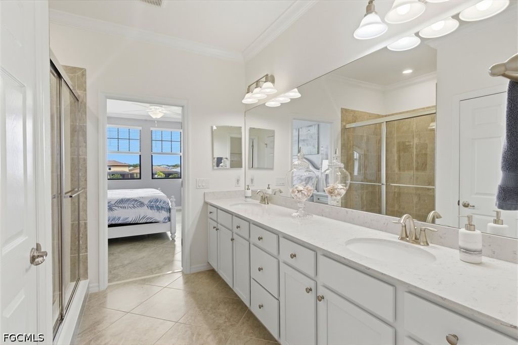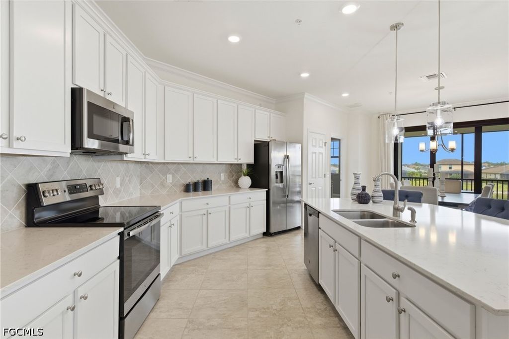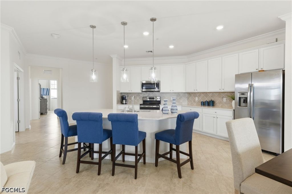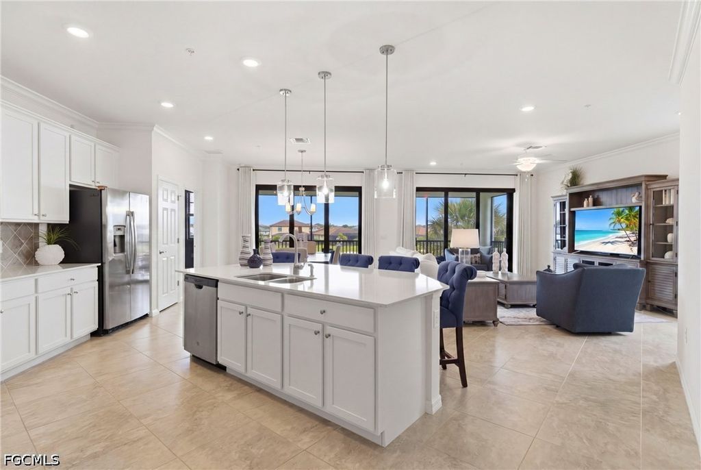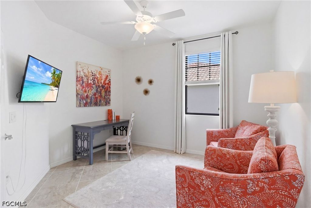 Top-floor corner living with stunning lake views and a rare financial advantage"”HOA and condo fees are fully paid through December 2026. This pristine, turnkey furnished condo in the highly sought-after Arborwood Preserve offers bright, open living with beautiful sunrise exposure. The thoughtfully designed layout features an island kitchen, spacious living and dining areas, a versatile den perfect for a home office or reading retreat, and a screened lanai overlooking the water. Tile flooring runs throughout, and the private stairwell entry leads to a 1-car garage for added convenience. The primary suite is a relaxing retreat with dual quartz vanities, a tiled walk-in shower, and a generous walk-in closet. A split-bedroom floor plan provides comfort and privacy for guests, and the home is equipped with HURRICANE IMPACT glass. Located just a short walk from Arborwood Preserve's resort-style Town Center, residents enjoy access to a pool, fitness center, pickleball and tennis courts, on-site dining, and a full calendar of social activities. Ideal as a full-time residence, seasonal escape, or investment opportunity in one of Fort Myers' premier gated communities.