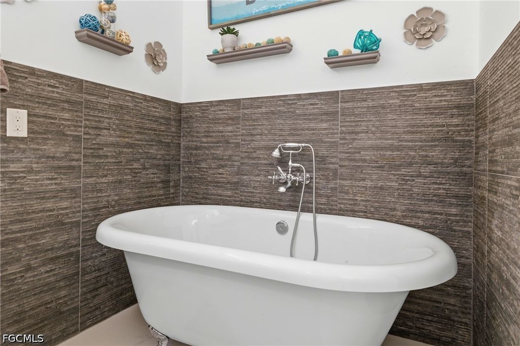 The private owner's suite offers a true retreat, complete with a custom walk-in closet designed as a concrete safe room, and a spa-style bath with dual vanities, a statement clawfoot tub, and a frameless glass shower.