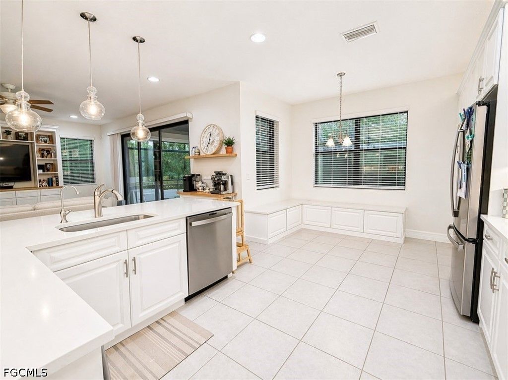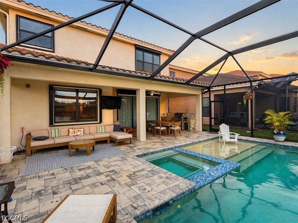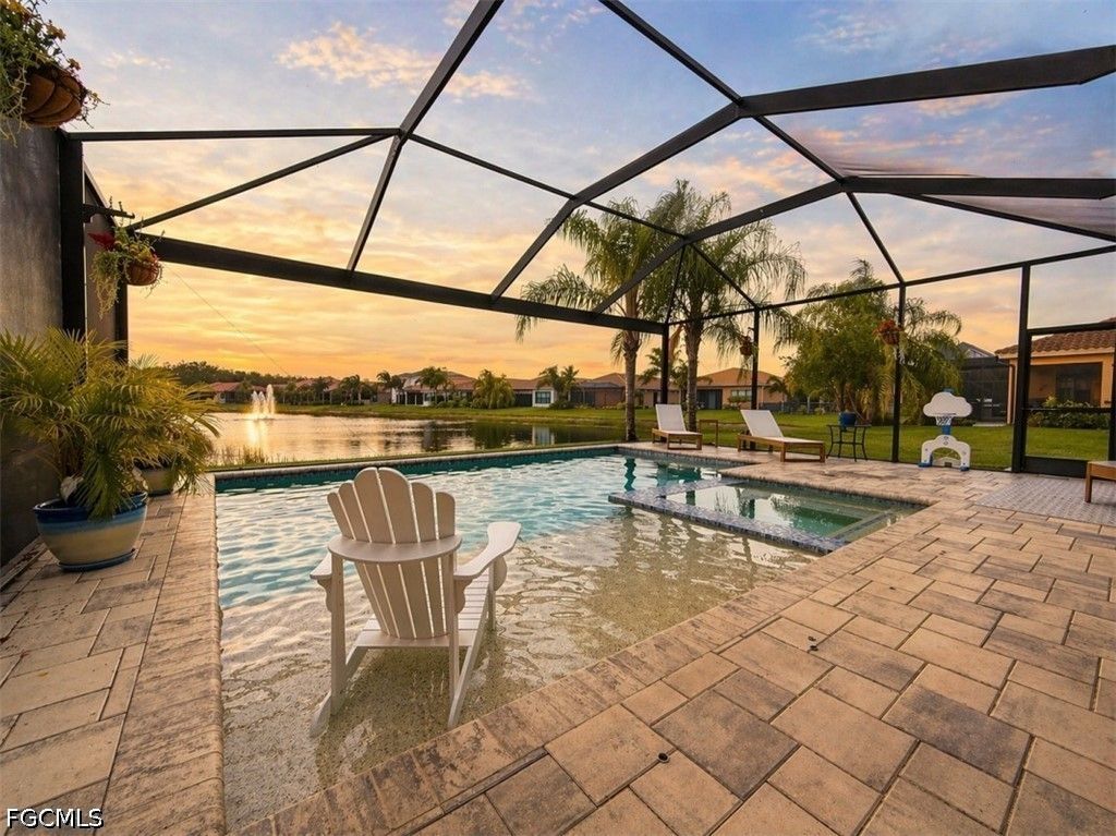 The real highlight awaits just outside the sliding doors: a screened lanai featuring a temperature-controlled saltwater pool, complete with a sun shelf and a relaxing spa. Overlooking extended lake views, this outdoor setting is ideal for hosting gatherings. A fully outfitted summer kitchen includes a grill, two-burner cooktop, sink, and refrigerator"”perfect for enjoying Florida's sunshine in every season. Thoughtful upgrades include a Kinetico water filtration system and an efficient tankless water heater.