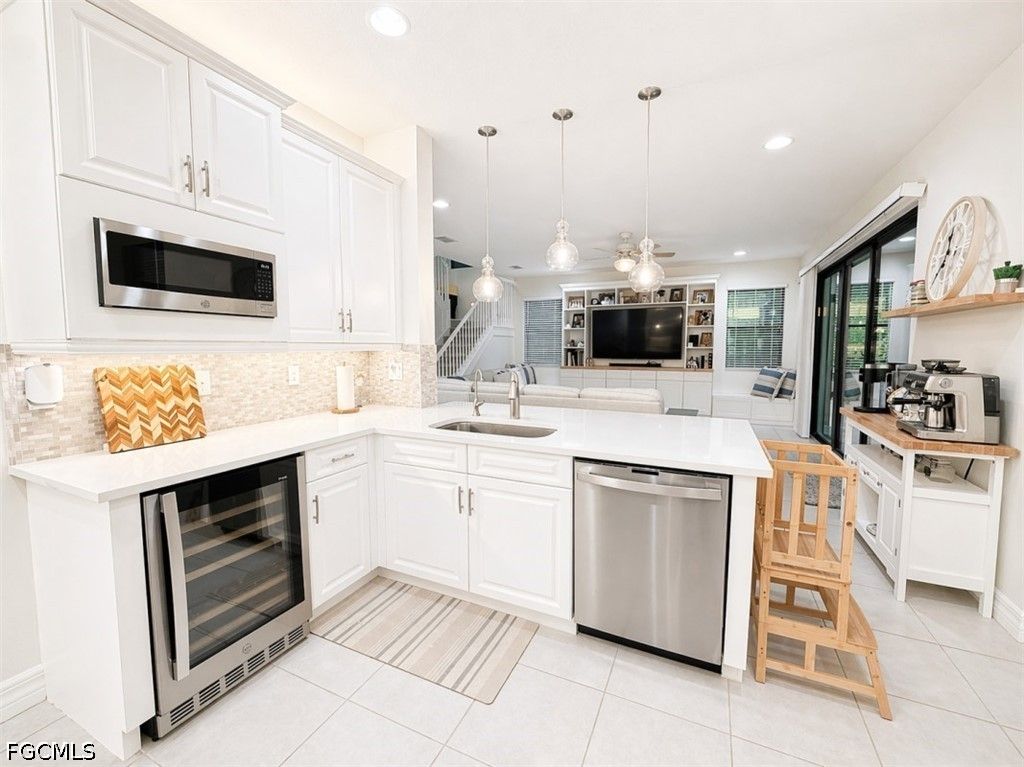 Discover refined Florida living in Marina Bay. From the moment you step inside, the chef-inspired kitchen makes an impression, complete with high-end stainless steel appliances, sleek quartz surfaces, custom pull-out cabinets, and a sunlit breakfast area. On the main level, an ensuite room with a Murphy bed creates an ideal space for a home office or welcoming guest quarters. Upstairs, you'll find a private retreat featuring three more bedrooms, including an indulgent primary suite.