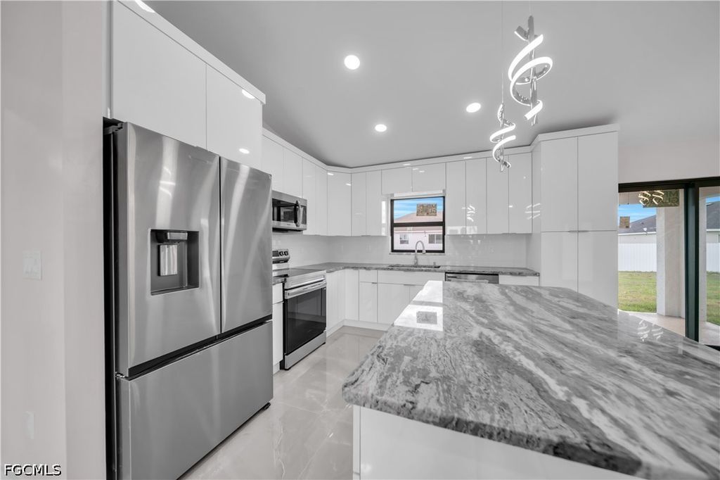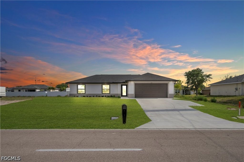 Welcome to your dream home in Cape Coral! This stunning single-family home boasts 3 bedrooms, 2 bathrooms, and a spacious 2-car garage. The modern touches throughout the home, including granite counters, stainless steel appliances, and tile flooring, create a luxurious and inviting atmosphere. The open concept layout is perfect for entertaining guests or simply enjoying quality time with your family. With impact doors and windows, you can rest easy knowing your home is protected during storm season. The personalized walking closets provide ample storage space for all your belongings. And if you're looking to cool off on those hot Florida days, there's plenty of space to add a pool in the backyard. Located near everything Cape Coral has to offer, including shopping, dining, and entertainment, this home truly has it all. Don't miss your chance to own this beautiful new construction home in one of the most desirable areas of Southwest Florida. Live the life you've always dreamed of in this perfect Cape Coral oasis.