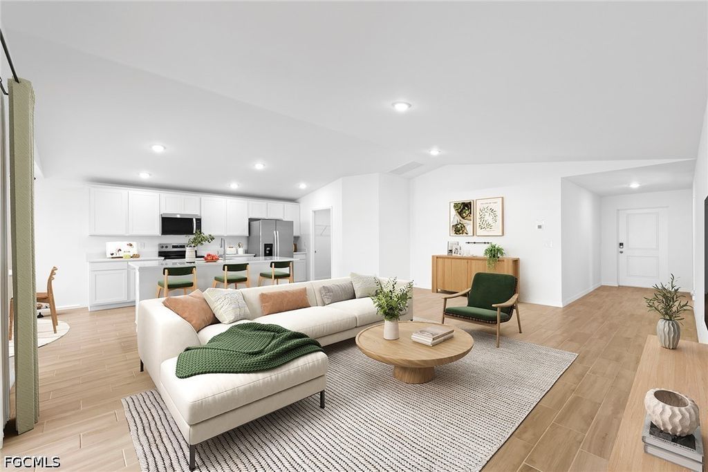 NEW CONSTRUCTION WITH WARRANTY! *Estimated delivery May 2026.* CITY WATER/SEWER HOMESITE - ALL ASSESSMENTS PAID! The Palm offers 1,550 square feet of thoughtfully designed living space. The spacious Great Room with its vaulted ceiling flows effortlessly to the private covered lanai"”ideal for indoor-outdoor living and entertaining. At the heart of this open layout, the kitchen features a freestanding island and designer cabinetry with soft-close doors, opening to a bright dining area with a tray ceiling and abundant natural light. The primary suite includes a generous walk-in closet and a private bath with dual vanities, a tiled shower, and convenient linen storage. Additional highlights include upgraded plank tile throughout the main living areas, designer cabinetry & quartz counters in the kitchen and baths, hurricane-impact windows and doors, stainless steel kitchen appliances, and an attached two-car garage. Pictures, renderings, & virtual tour are of similar home & are used for display purposes only.