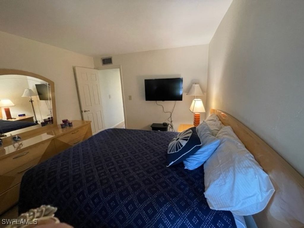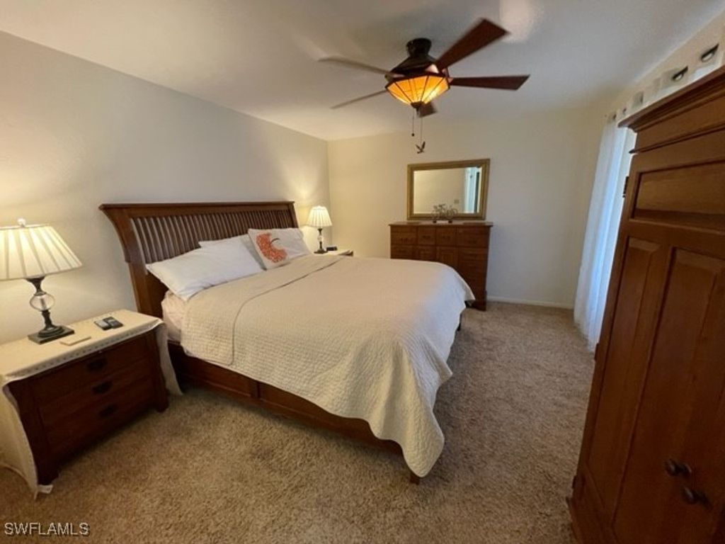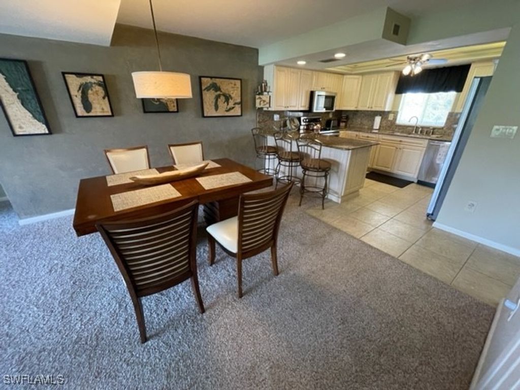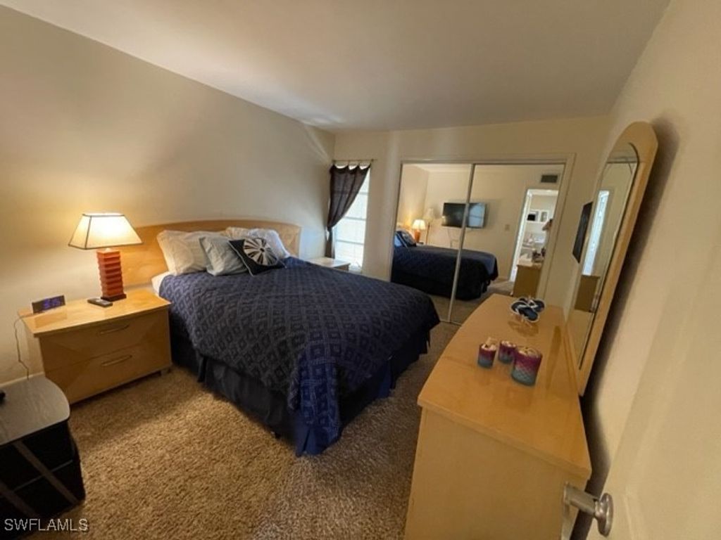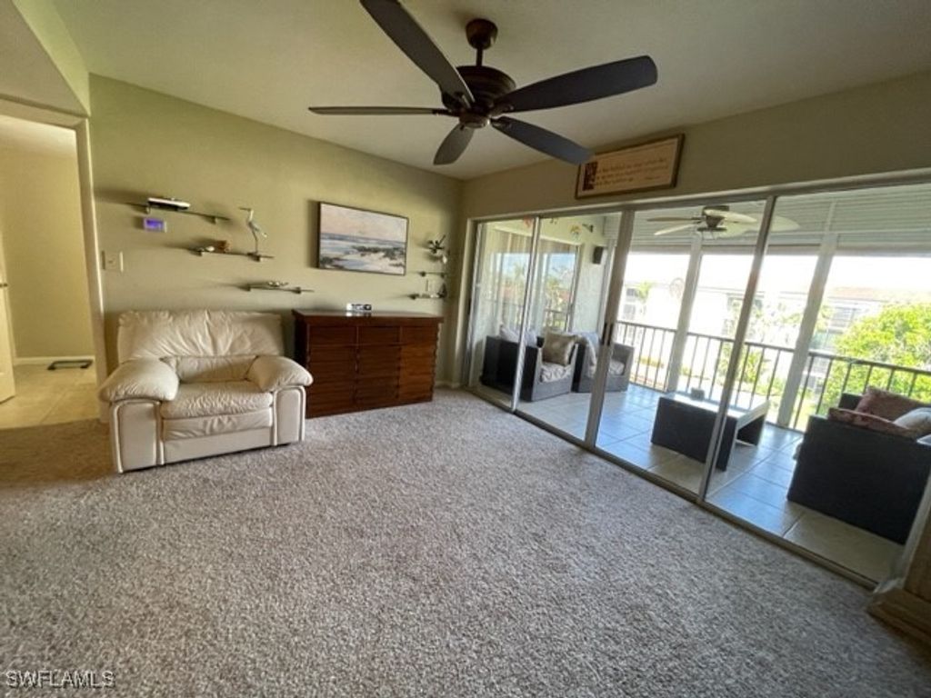 MONTHLY RENTAL - Nicely renovated 2 bedroom plus den, 2 bath condo on the 4th (top) floor with great lake view with fountain and walking bridge. All updated kitchen and baths, and den with wet bar, ready for entertaining! Fully furnished and well equipped. Screened lanai with pull-down storm shutter and roll-down shade screen. Carport for your car, in-unit laundry, and common elevator. Close to 2 pools, tennis courts, gym and clubhouse. Membership for two tenants comes with your occupancy, this includes golf, tennis, pickleball, bocce, use of restaurants, Gulf-access marina, clubhouse, entertainment and special events. Waterfront barbeque and picnic area on the river. Manned gate with 24-hour patrol. Close to shopping, medical, theater, beaches and more. Move-in ready! No smoking, small pets considered.