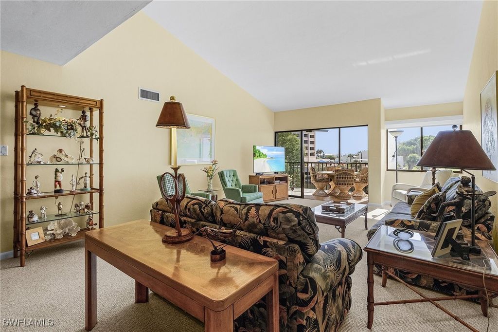Take advantage of this exceptional opportunity to reside in Clipper Cove Village at The Landings with this spacious 2-bedroom top-floor unit offering impressive views of the lake and golf course. The eastern exposure lanai provides an ideal setting for enjoying peaceful mornings, whether you prefer to read or simply observe nearby golfers. The condominium boasts an updated kitchen with granite countertops, stainless steel appliances, a new water heater and air conditioner, vaulted ceilings in the living area, assigned under-building parking, and is offered turnkey. The lanai offers a tranquil environment to relax during twilight hours following your favorite activities. Within a short stroll, enjoy waterfront dining at the recently renovated Wheelhouse Grille.
