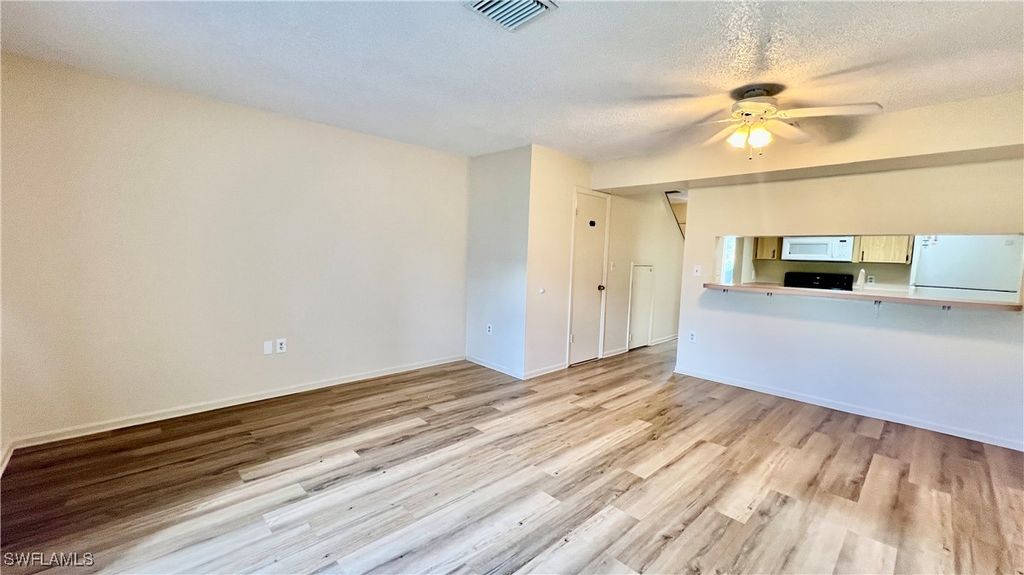 Adorable 2 bedroom townhouse located off of McGregor and Camelot! Perfect location super close to shopping, restaurants, FSW and beaches. Townhouse has two bedrooms upstairs, one of which has a private screened in lanai Downstairs you have your kitchen, living room, utility room with washer and dryer and screened in lanai with storage closet. Unit has brand new luxury vinyl wood plank style flooring and was freshly painted with a new air condition unit. Unit comes with water paid. You will love having a place all to yourself with nobody above you or below you. Great location and available immediately. First and Security Deposit due prior to move in. One pet allowed with approval. Pet fee applies.
