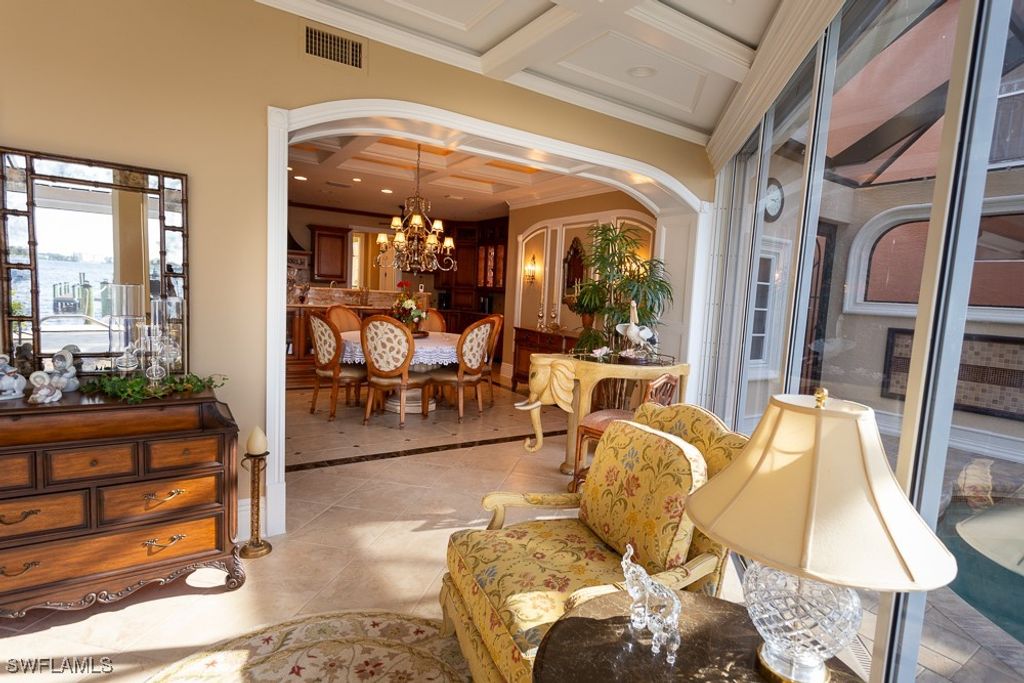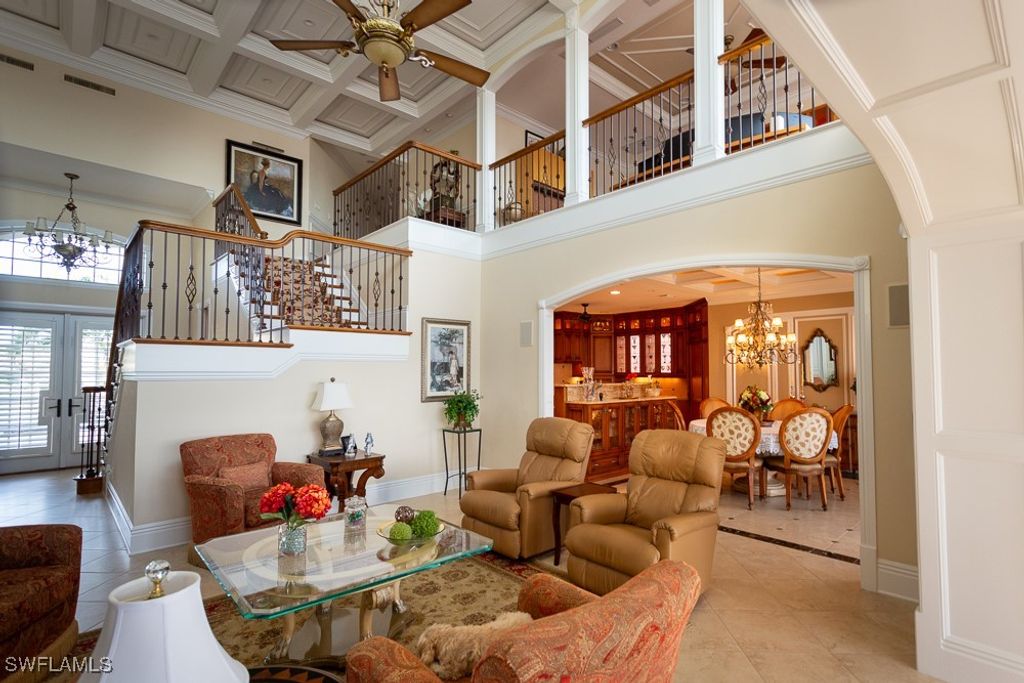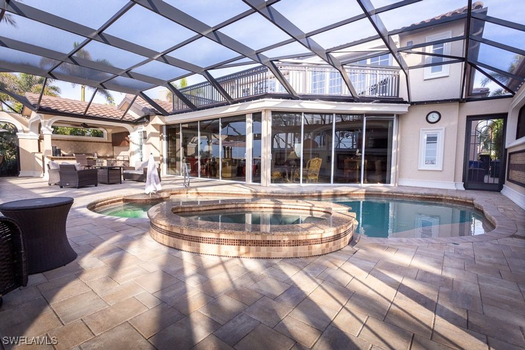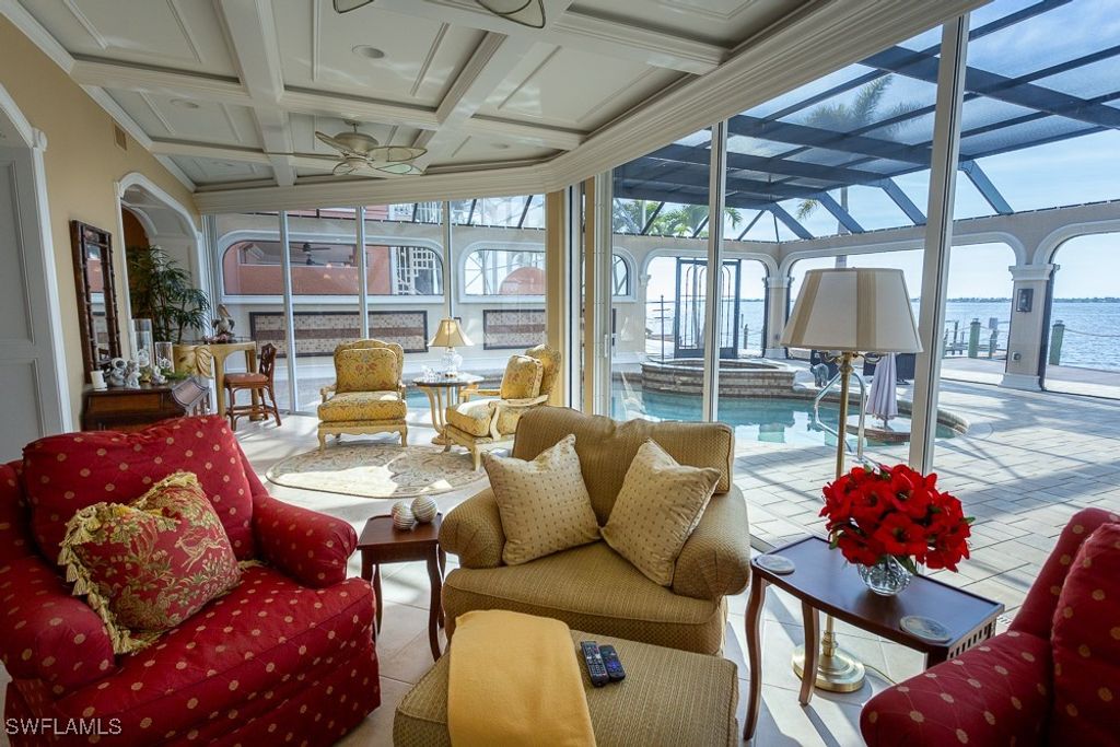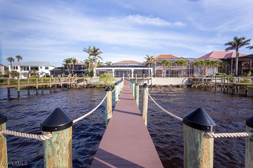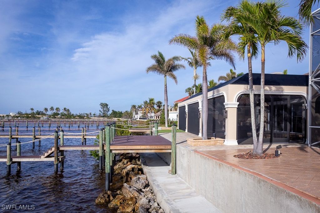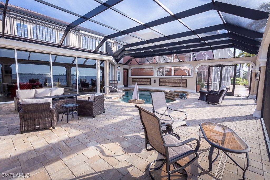 Totally remodeled and updated 2 story 4-bedroom home on the Caloosahatchee River in the beautiful Riverside Yacht Club Estates neighborhood located within the gated community of The Landings Yacht, Golf, and Tennis development located on McGregor Blvd. between College and Cypress Lakes Drive just south of the Cape Coral bridge. Large outdoor screened in Lanai with concrete with rebar pillars and concrete with rebar cross beams to protect against Hurricane and Wind damage. One Hundred and Sixty Foot Pier configured for both a boat and a jet boat lift capable of accommodating boats with 10-foot beams and up to 36 feet in length. Electric and water are in place to extend to the pier and lifts when lifts are installed. A 50-foot wet slip in the private adjacent Riverside marina is available to purchase from the seller for $70,000. Beautifully decorated with cove molding and recessed lighting throughout the entire home. All four bedrooms are en-suites with private full bathrooms and three of the bedroom suites are located on the second floor. The large Master Bedroom is located on the first floor. A fifth bedroom can be created in the first-floor den with a built -in queen size Murphy Bed and an adjacent full bathroom. The second floor also contains a large office with a one-half bath overlooking the Caloosahatchee River with sliding glass doors to access an outdoor second floor patio. Both floors have laundry rooms with washers and dryers. The covered Lanai provides many reasons for outside entertainment with an in-ground pool, hot tub, built-in outdoor kitchen and plenty of space for sunbathing. A large 20 by 8-foot deck is located outside the covered Lanai for sunbathing without the screen enclosure or for watching the beautiful sunsets. An additional plus is the ideal location for viewing the Fourth of July fireworks.