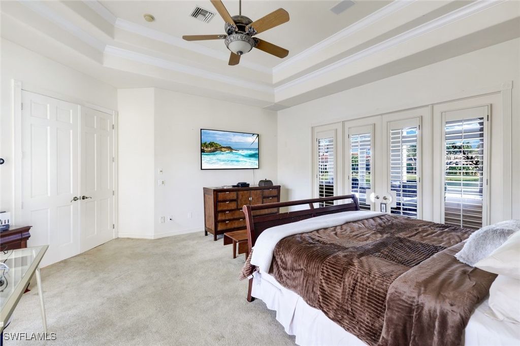 The home boasts an open floor plan with cathedral ceilings, custom mirrors, and a gourmet kitchen equipped with modern appliances, new Sub-Zero Refrigerator and JennAir microwave and convection wall oven, a large pantry, and ample counter space, perfect for the culinary enthusiasts. The master suite features a walk-in closet and a luxurious en-suite bathroom.