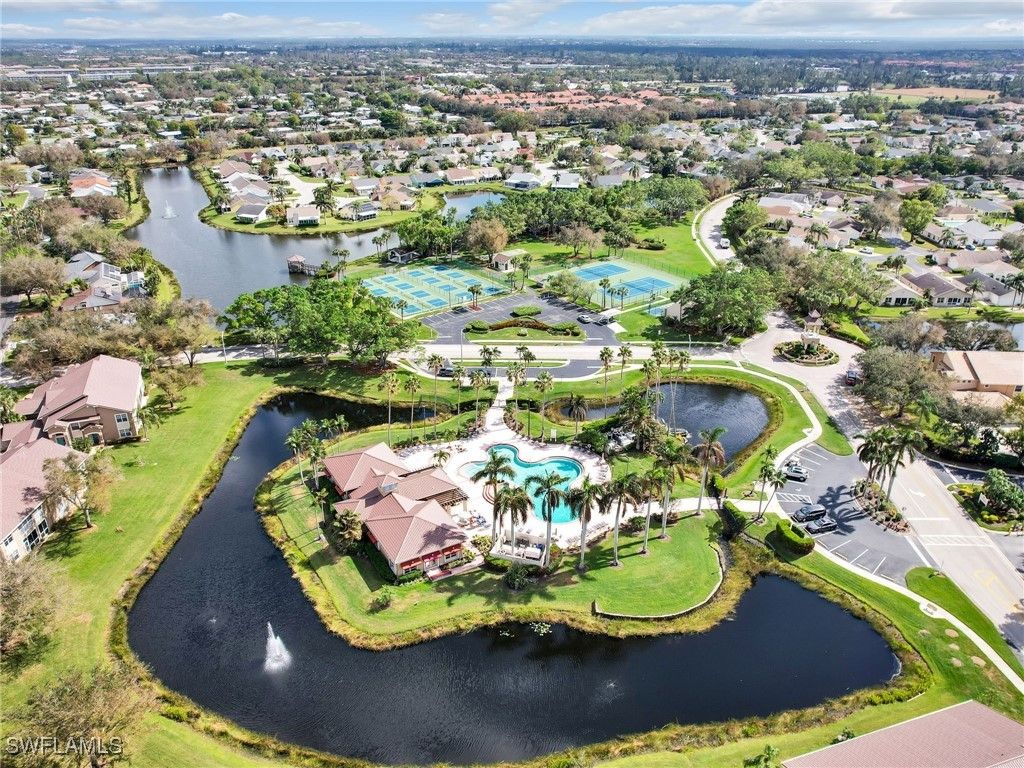 Step outside into your private backyard oasis with tranquil views of the lake and a charming fountain. The pool is double-heated by electric and solar.