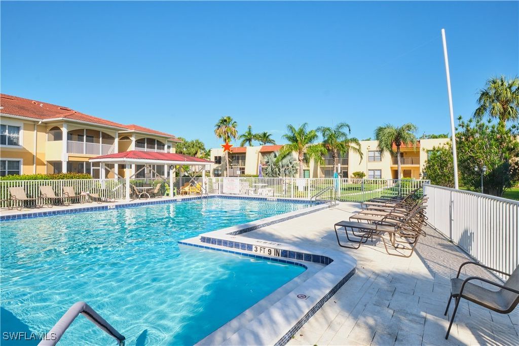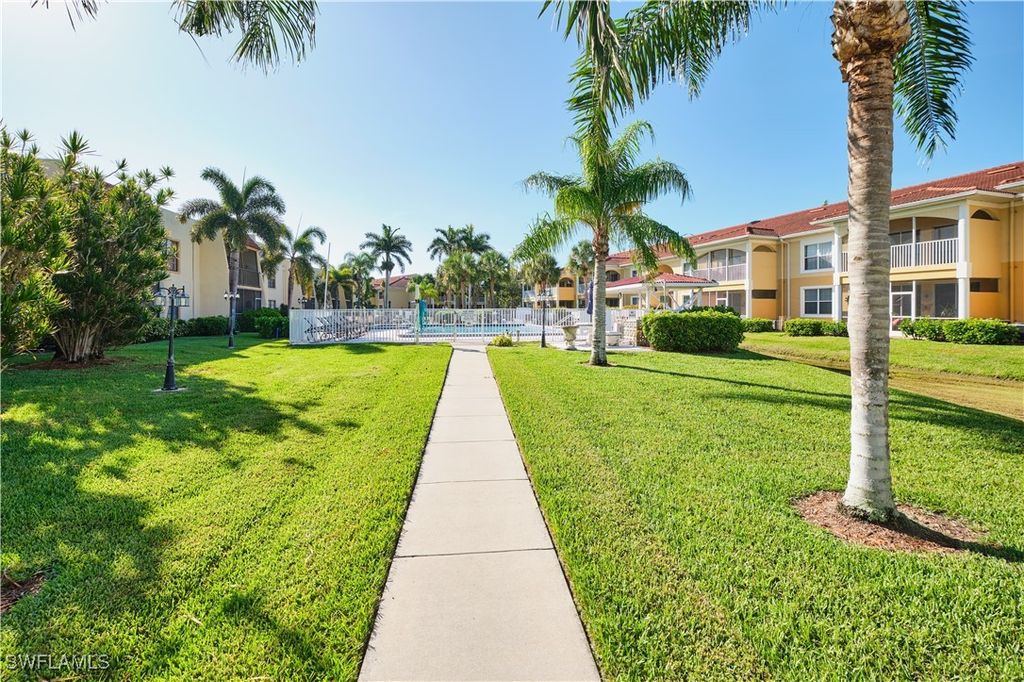 2 bedroom/2 bathroom condo available for long term lease. Convenient location in very desirable South Fort Myers, with quick access to College Pkwy, Fort Myers Beach, and Cape Coral! Very clean, with new laminate flooring, lots of storage space, screened lanai, overlooking pool and landscaped courtyard. 1 designated parking spot plus lots of guest parking. Publix is around the corner, close to the restaurants, shopping, and main roads. Community offers a heated pool, grilling area, shuffle board. This second floor condo has no elevator. No pets allowed. No smoking. HOA approval required along with background check and credit history report. This is annual rental. Requires 1 month security deposit, and 1 month rent, plus association application, background check for all adults 18 and older. Moving out cleaning fee of $300. Rent includes water, amenities, exterior pest control. Tenant pays for electricity, internet, interior pest control, renter's insurance. Come see the place! Available NOW!